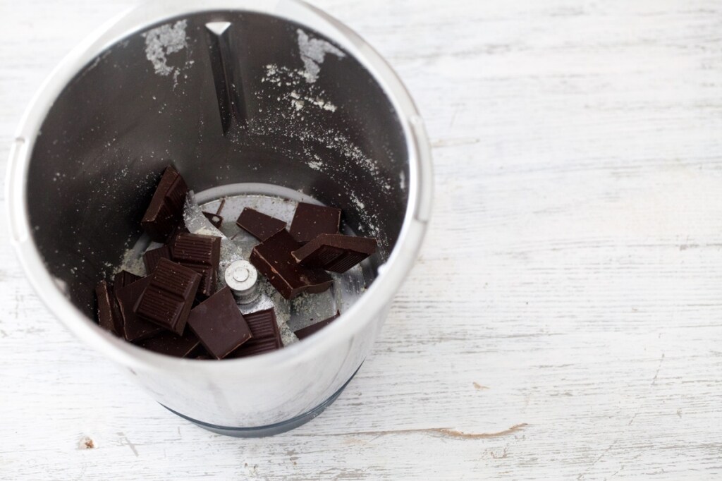 Guardate la video ricetta anche per Bimby TM5 e TM31. Porre nel boccale il cioccolato e tritare.